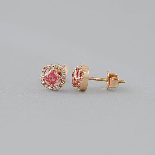 Pink Round Cut Lab Grown Diamond Halo Stud Earrings