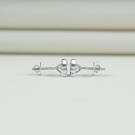 Baguette Cut Lab Grown Diamond Bar Stud Earrings
