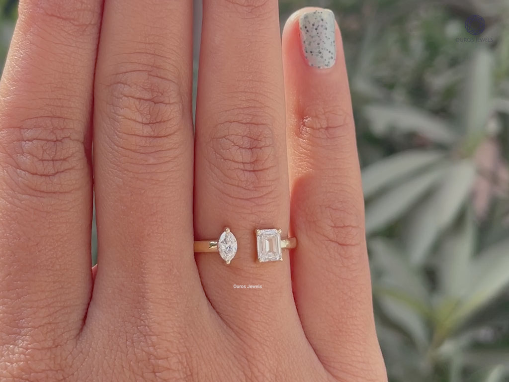 Emerald And Marquise Lab Diamond Open Cuff Ring