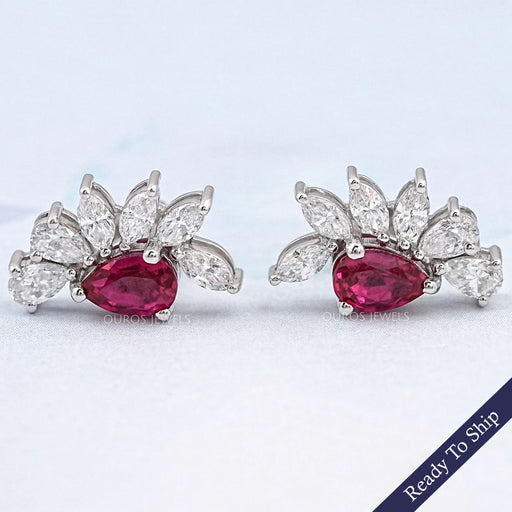 Ver todos los detallesPear Ruby Gemstone And Marquise Diamond Earrings