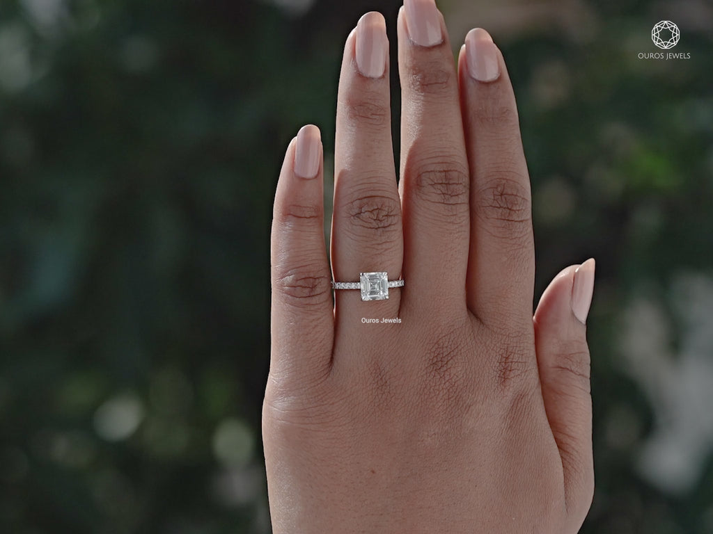 Asscher Cut Solitaire Accent Diamond Engagement Ring