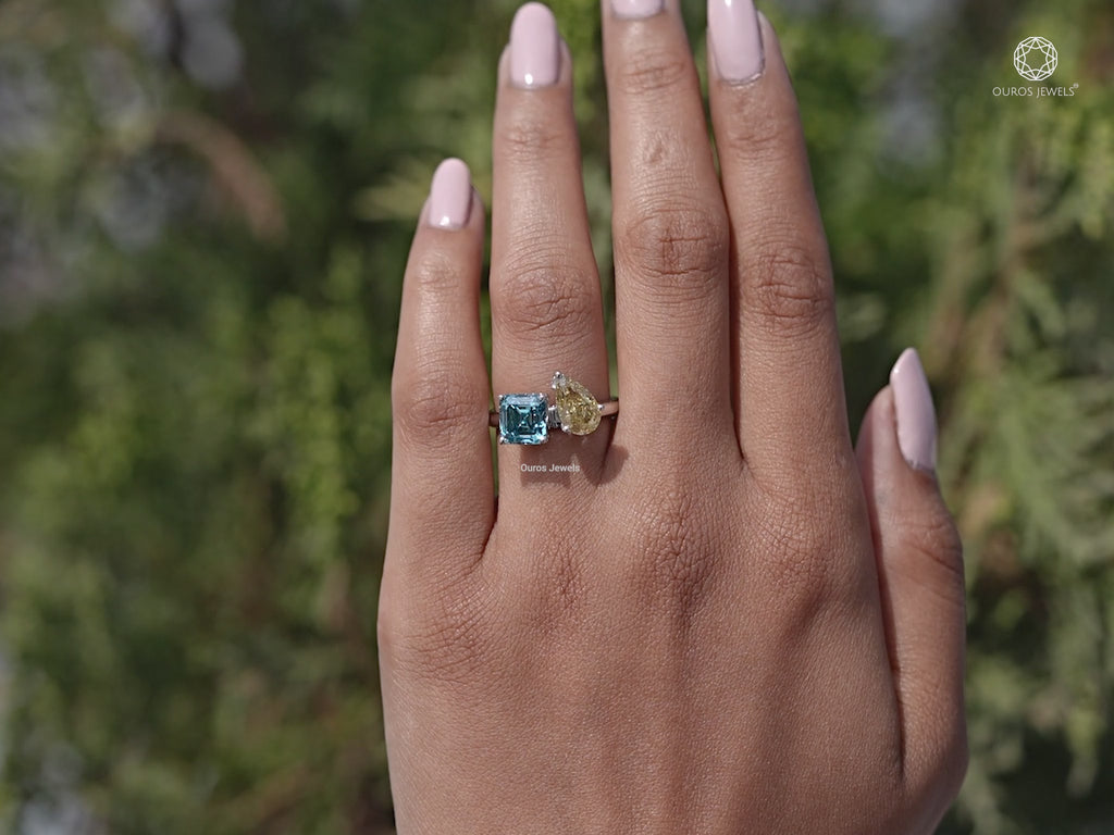 Asscher and Pear Toi Et Moi With Hidden Halo Ring
