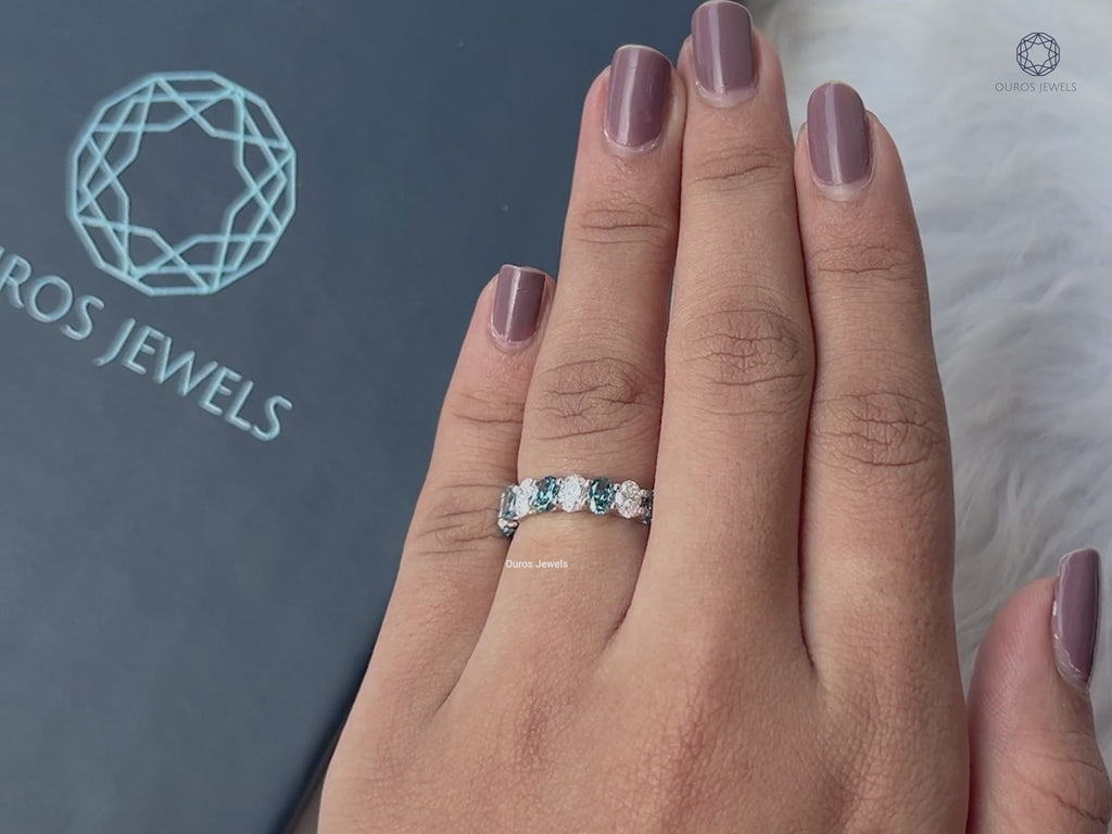 Blue Oval Cut Lab Diamond Eternity Wedding Band