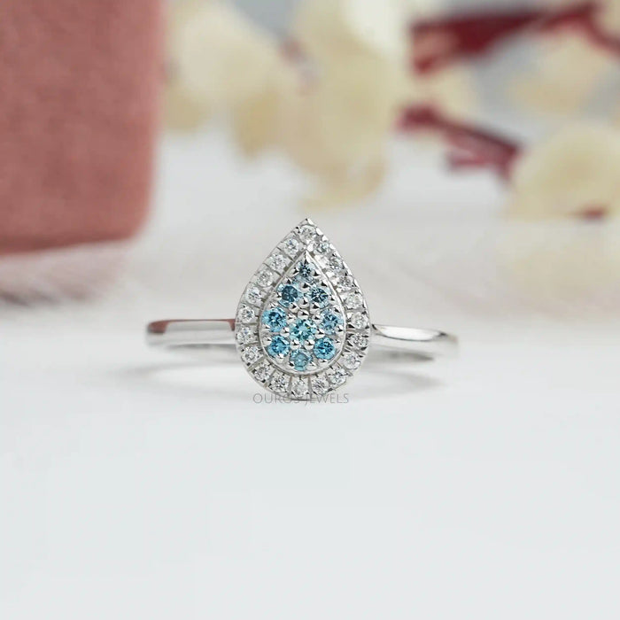 Pear Shape Round Cluster Diamond Halo Engagement Ring
