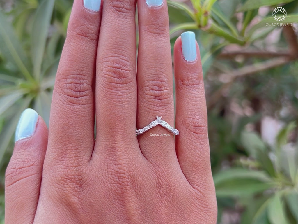 Tapered Baguette and Round Chevron Wedding Band