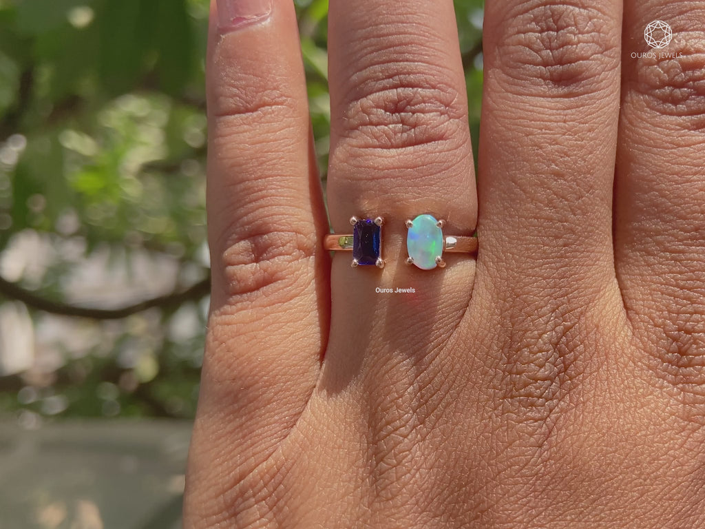 Opal And Sapphire Emerald Open Cuff Ring