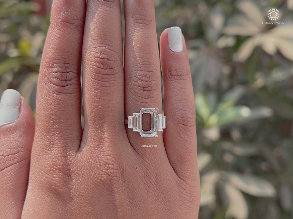 Five Stone Emerald Cut Semi Mount Wedding Ring