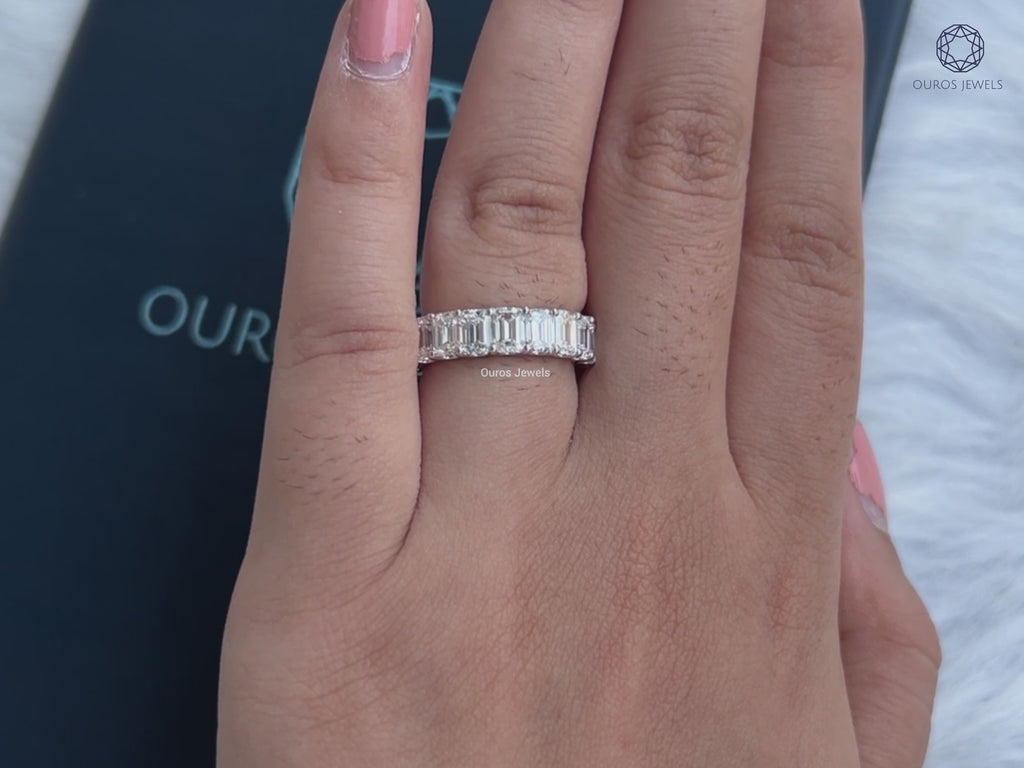 Emerald Cut Lab Diamond Full Eternity Wedding Band
