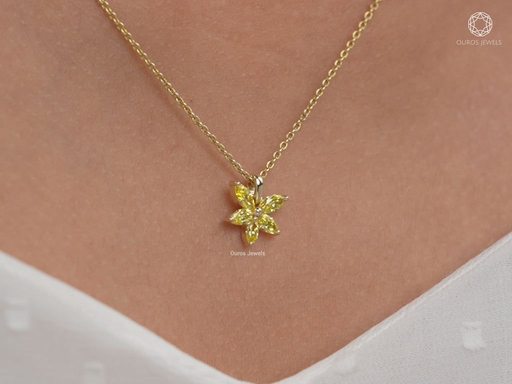 Yellow Marquise Cut Lab Grown Diamond Floral Style Pendant