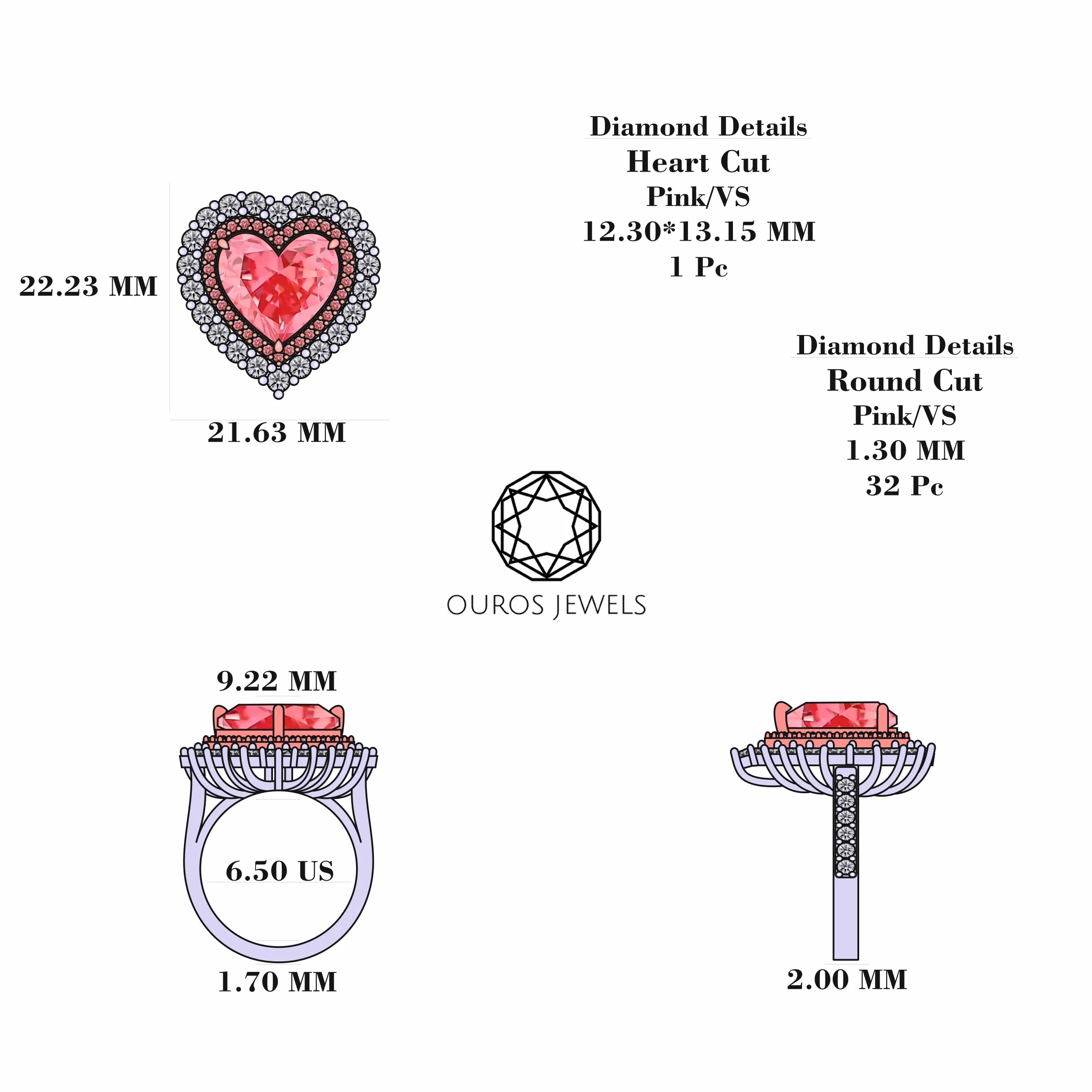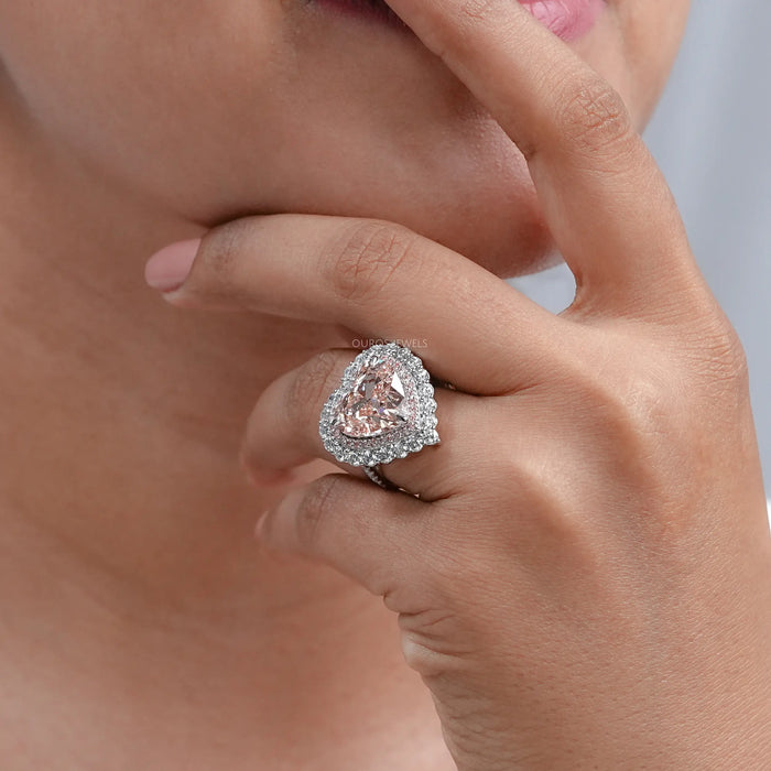 Double Halo Pink Heart Cut Lab Diamond Engagement ring