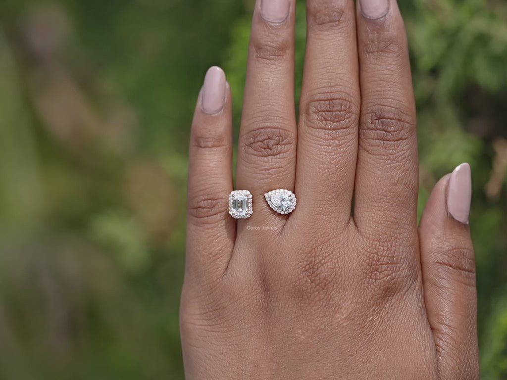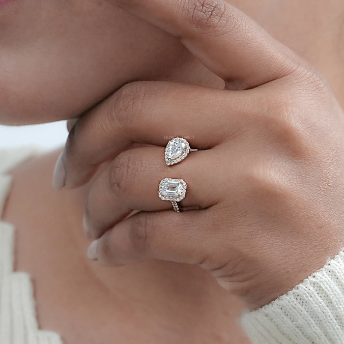 Pear And Emerald Cut Halo Toi Et Moi Engagement Ring