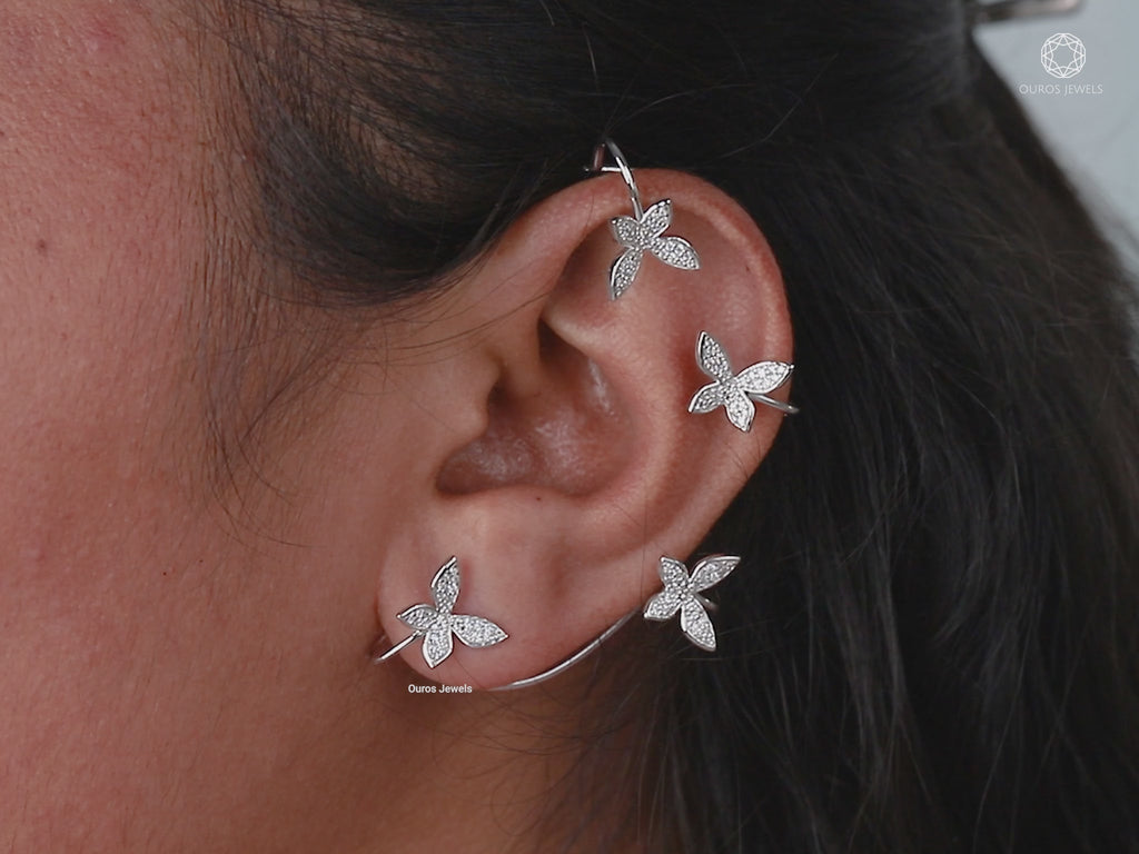 Butterfly Shape Round Cut Diamond Ear Cuff Earrings