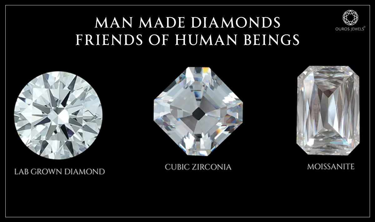 Man-made diamonds are an eco-friendly and cost-effective alternative to natural diamonds, providing the same visual appeal while minimal environmental effects. These lab-grown diamonds not only have the brilliance and purity of real diamonds, but they also provide a sustainable option for mindful customers. Man-made diamonds are ideal for engagement rings, wedding bands, and daily jewelry, giving you to indulge in luxury while being ethical. Choosing these diamonds promotes ethical standards in the jewelry business, making them an excellent choice for customers who appreciate both beauty and responsibility. Man made diamonds include lab grown diamonds, moissanite, and cubic zirconia. All of these diamonds or diamond alternatives have different benefits and disbenefits. But, out of this, lab grown diamonds are truly man made diamonds that carries durability than moissanite and cubic zirconia.