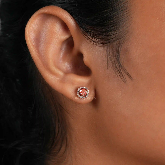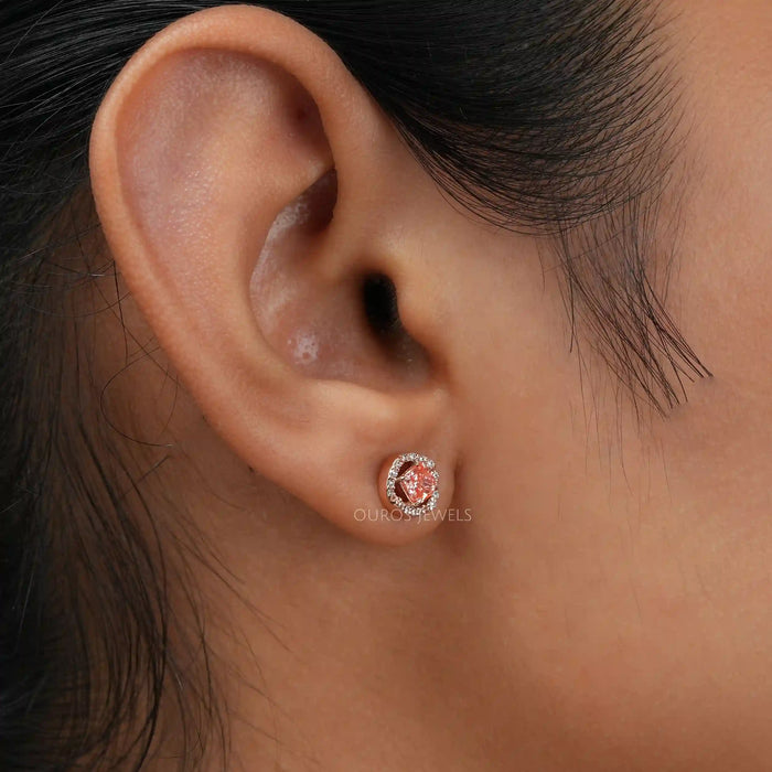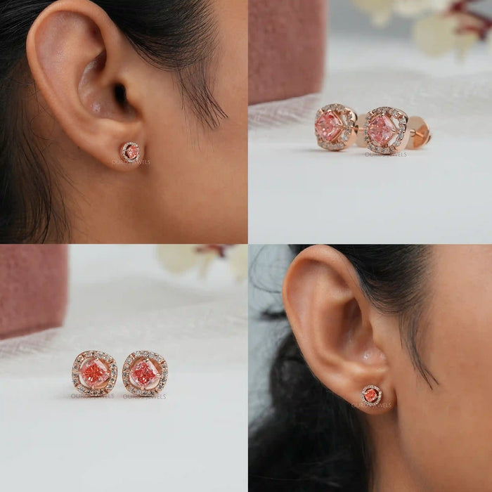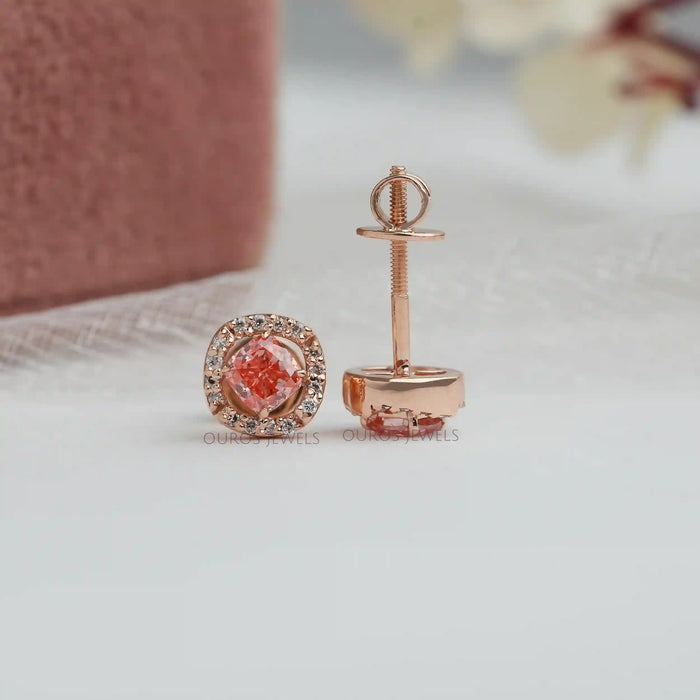 Pink Cushion Cut Halo Stud Earrings