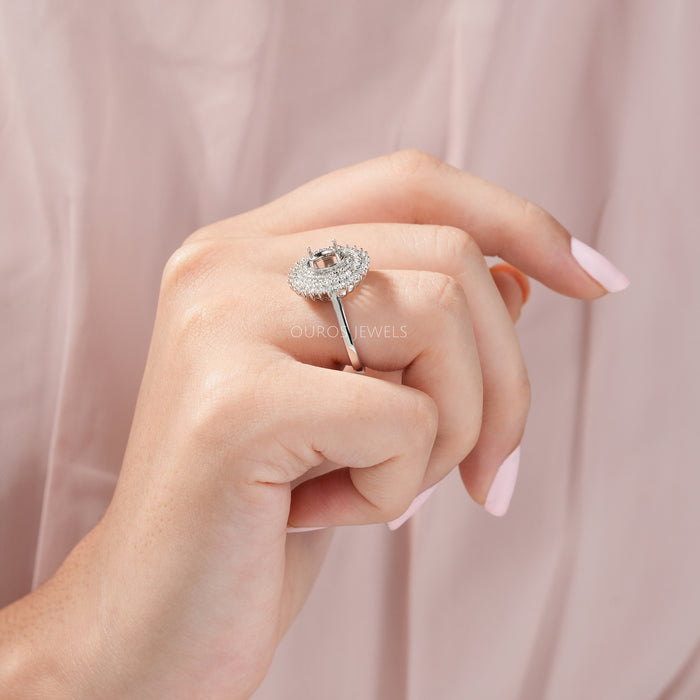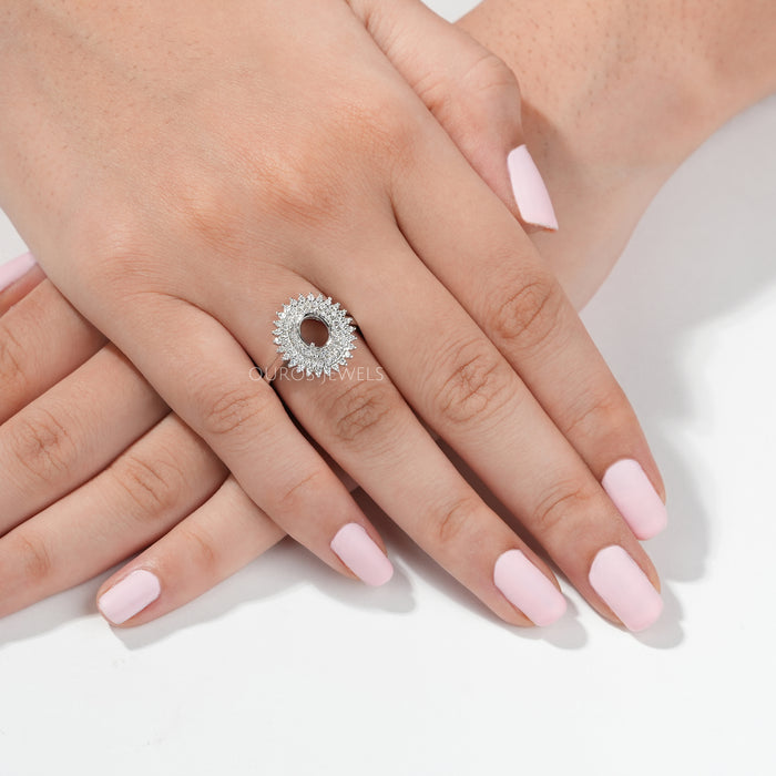Oval Cut Semi Mount Cluster Diamond Engagement Ring