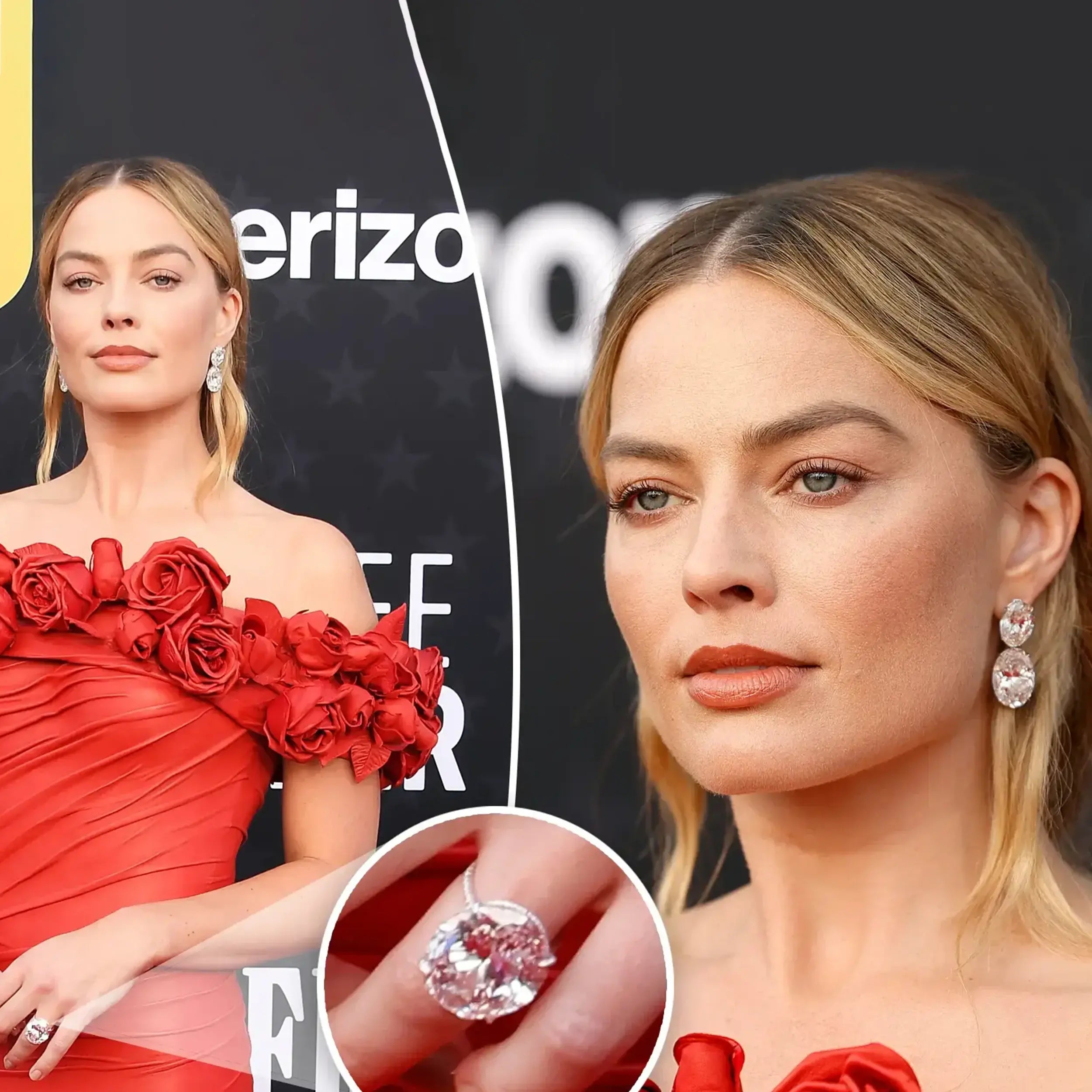 Born on July 2, 1990, in Dalby, Australia, Margot Elise Robbie has become a renowned actress and producer. Throughout her illustrious career, she has been nominated for three Academy Awards, six BAFTA Awards, and four Golden Globe Awards. Her marriage is symbolized by a stunning 1.50 carat pear-shaped diamond set in a pave setting on a gold band.