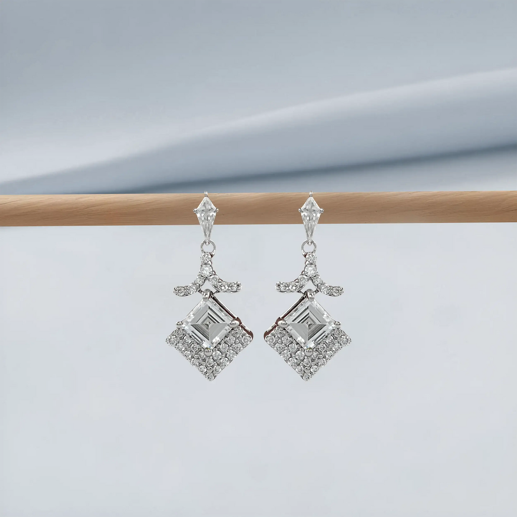 Carre Cut Lab Diamond Dangle Earrings