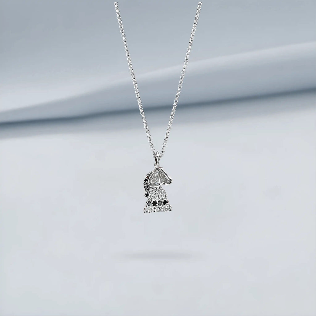 • Knight Chess Horse Cut Lab Diamond Cluster Pendant Necklaces