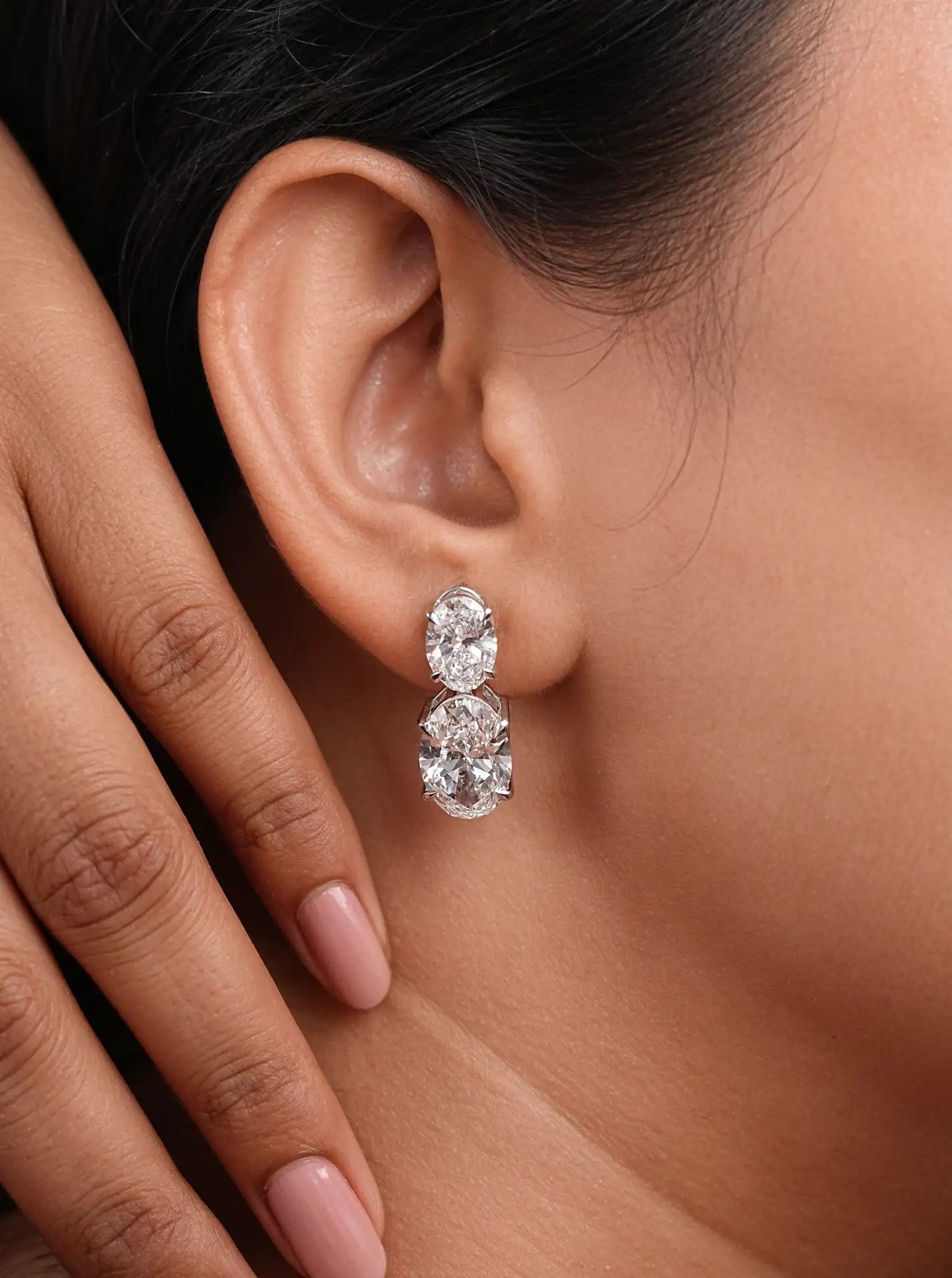 Margot Robbie Annual Oval Lab Diamond Earrings