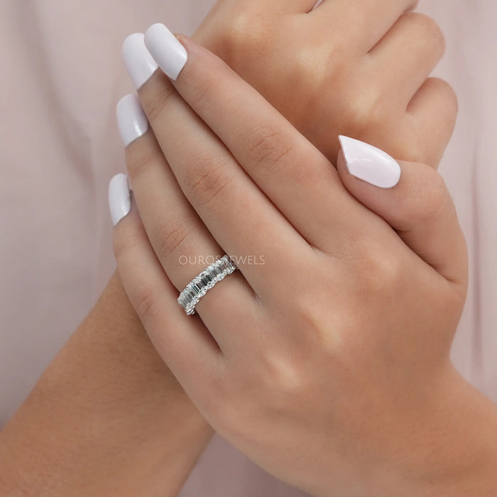 Emerald Cut Lab Diamond Full Eternity Wedding Band